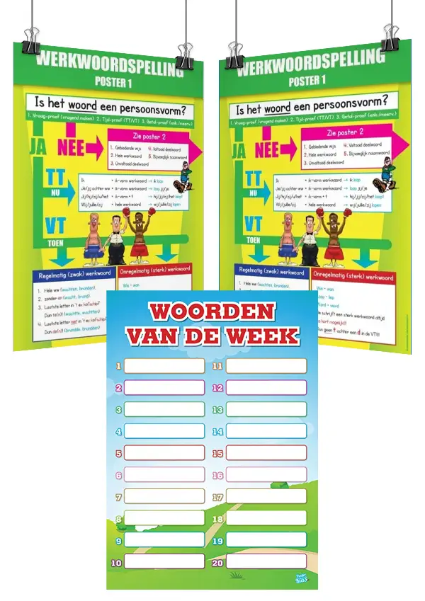 Of het nu gaat om Begrijpend lezen, Moeilijke woorden, Spellingsregels of Werkwoordspelling, ook voor deze onderwerpen heeft Poster in de klas een passende en realistische poster gemaakt.