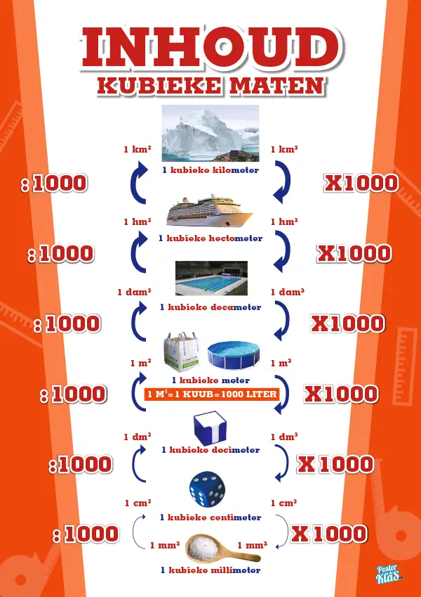 De vijf posters over het Metriek Stelsel trap methode (Lengte, Oppervlakte, Gewicht, Inhoud en Kubieke Maten) zijn nu ook als set te bestellen voor slechts € 39,95.
