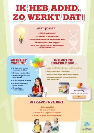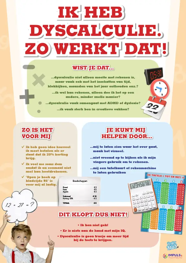 Deze poster is ontwikkeld in samenwerking met Impuls & Woortblind, vereniging voor mensen met AD(H)D, dyslexie en dyscalculie.